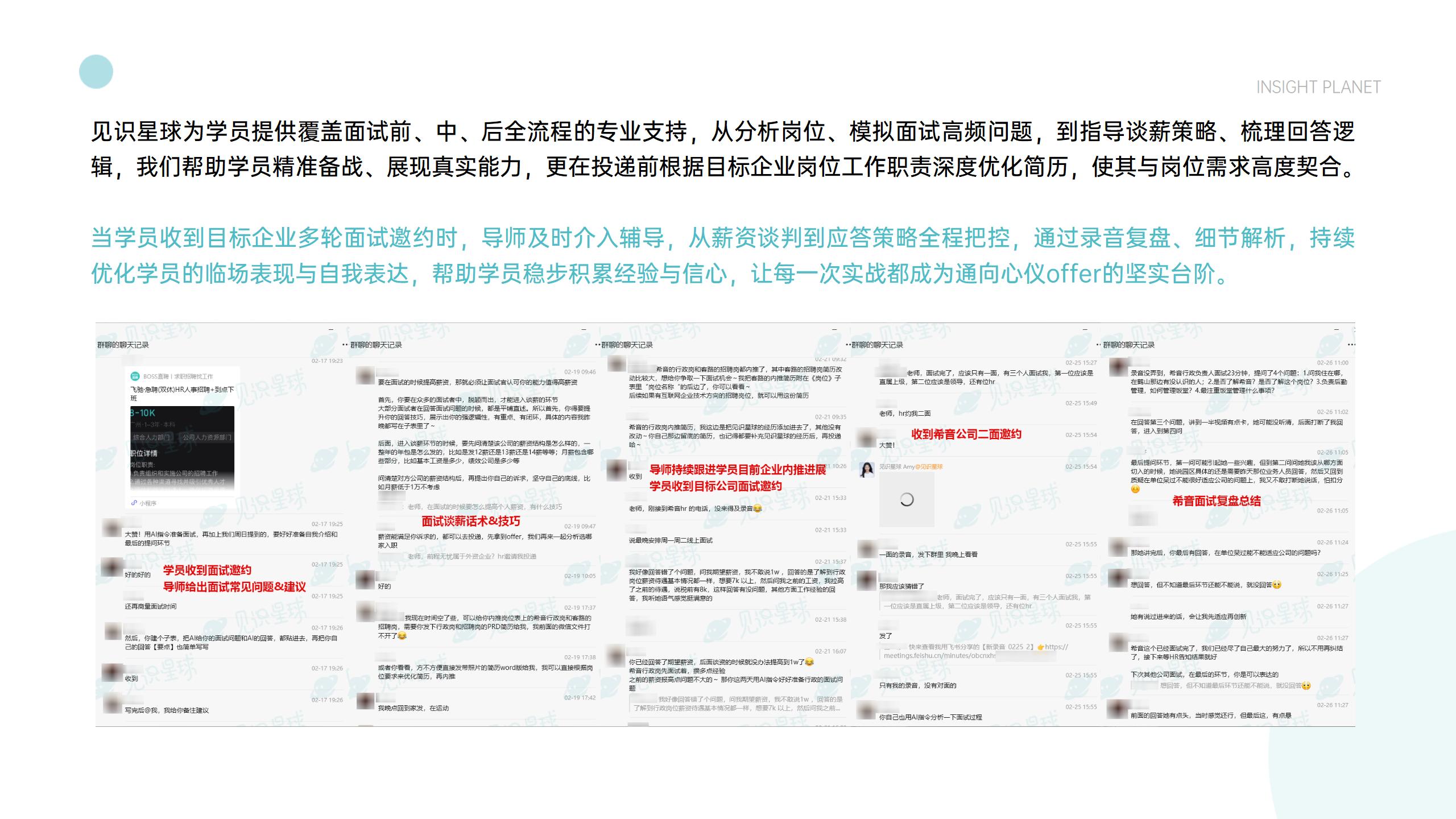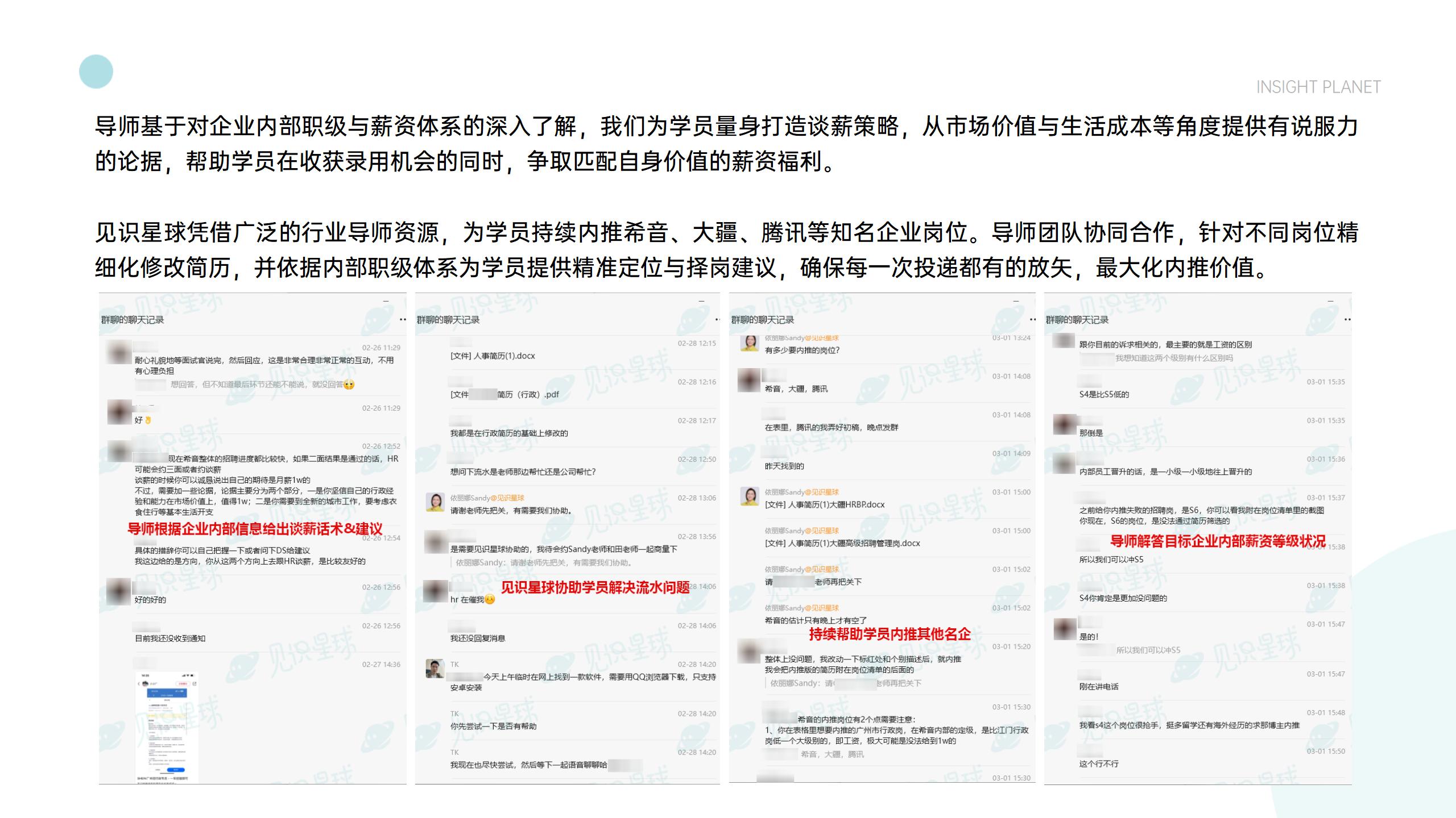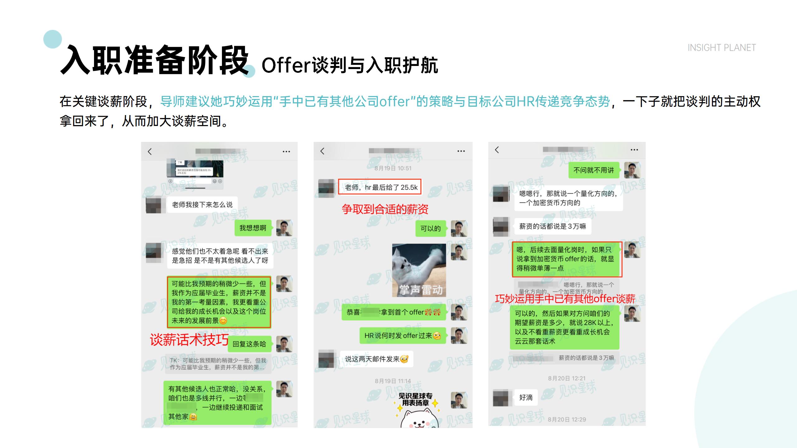 辅导笔面试策略、薪酬谈判等