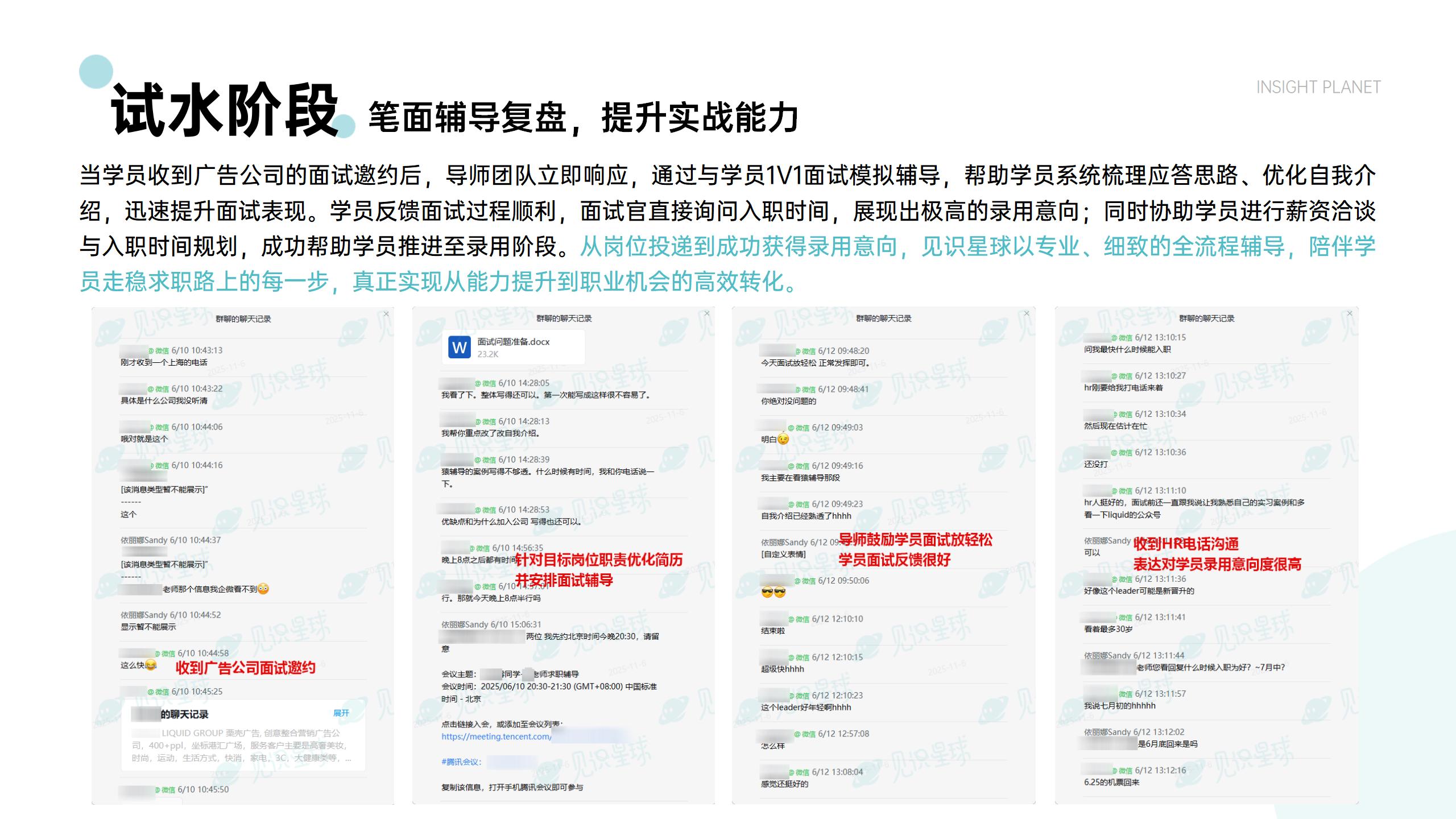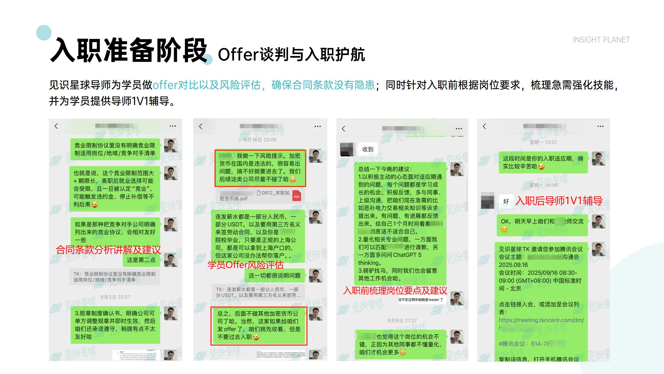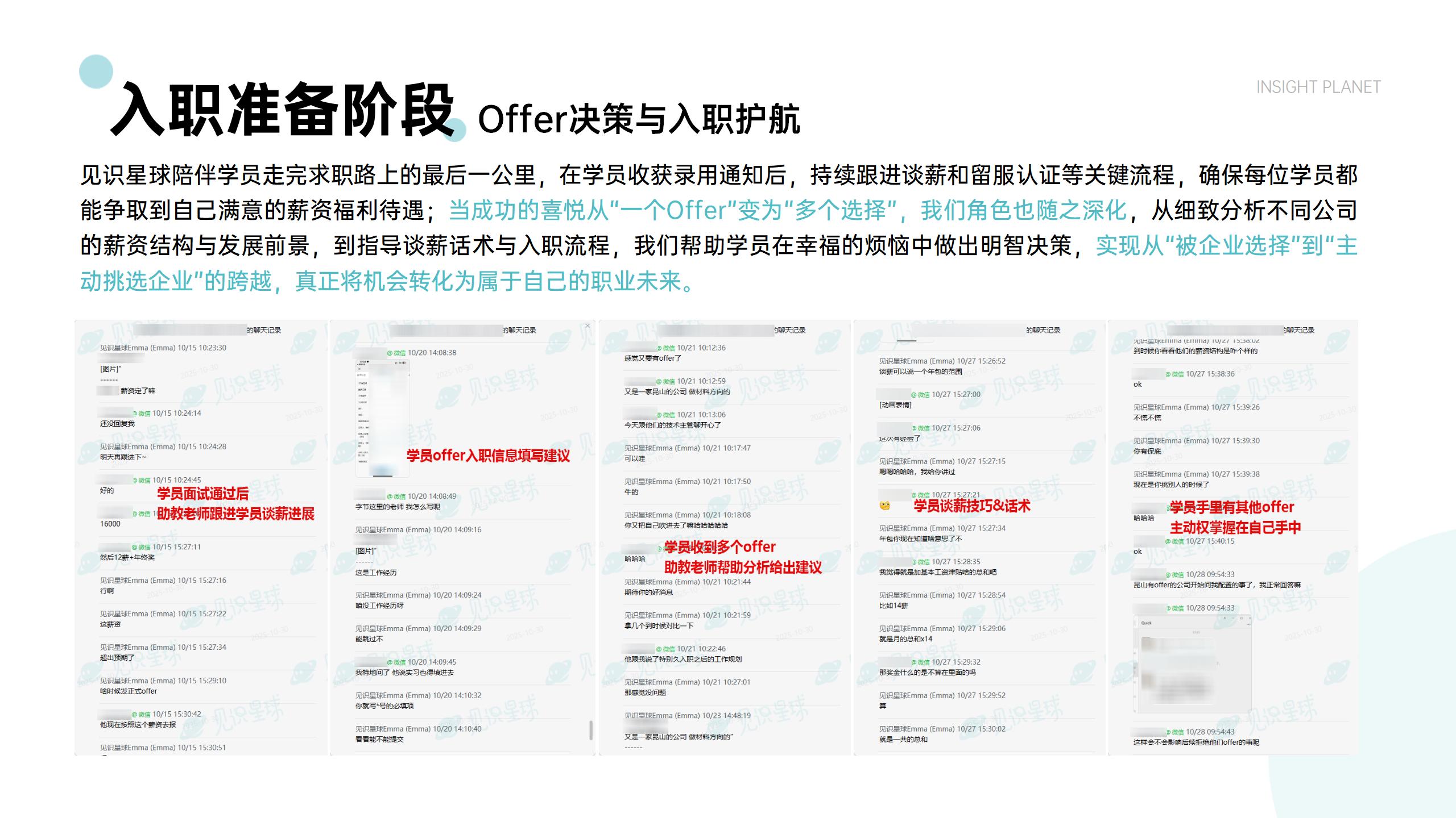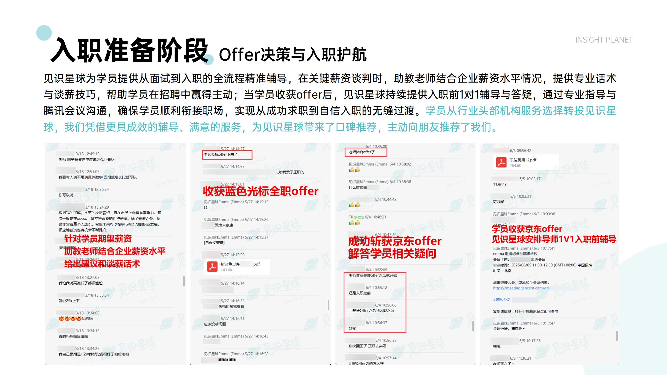 辅导笔面试策略、薪酬谈判等