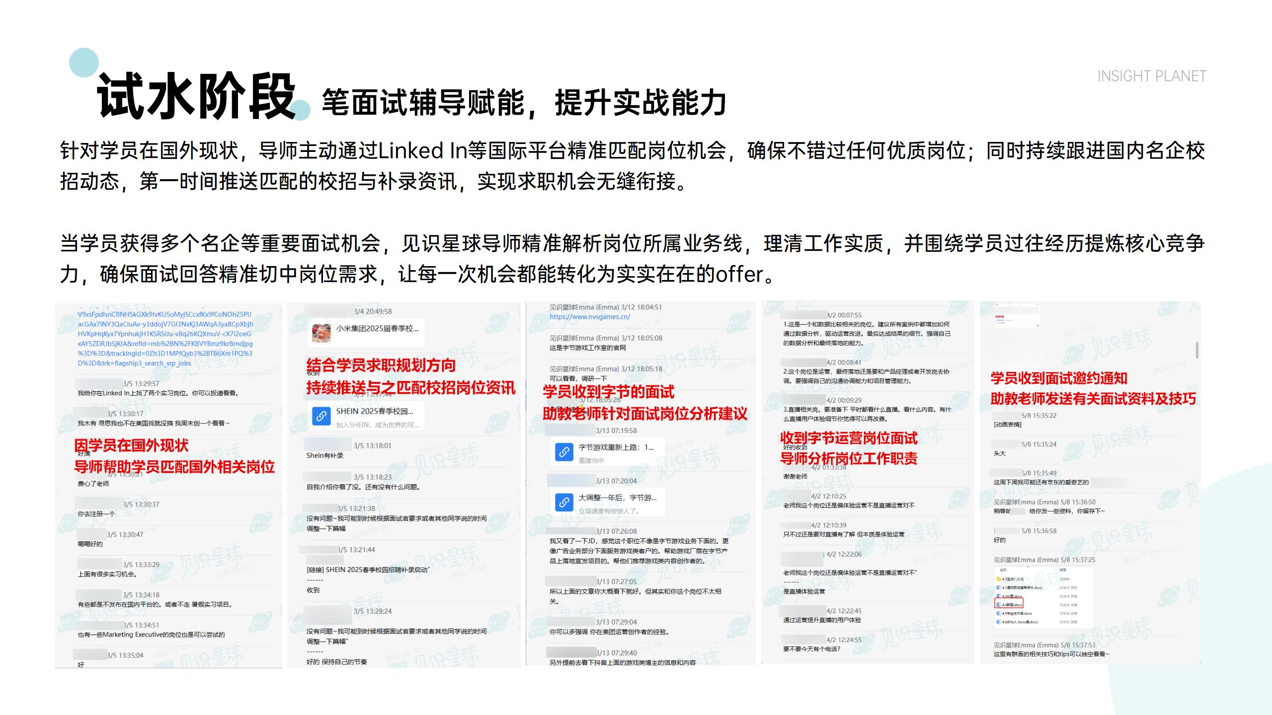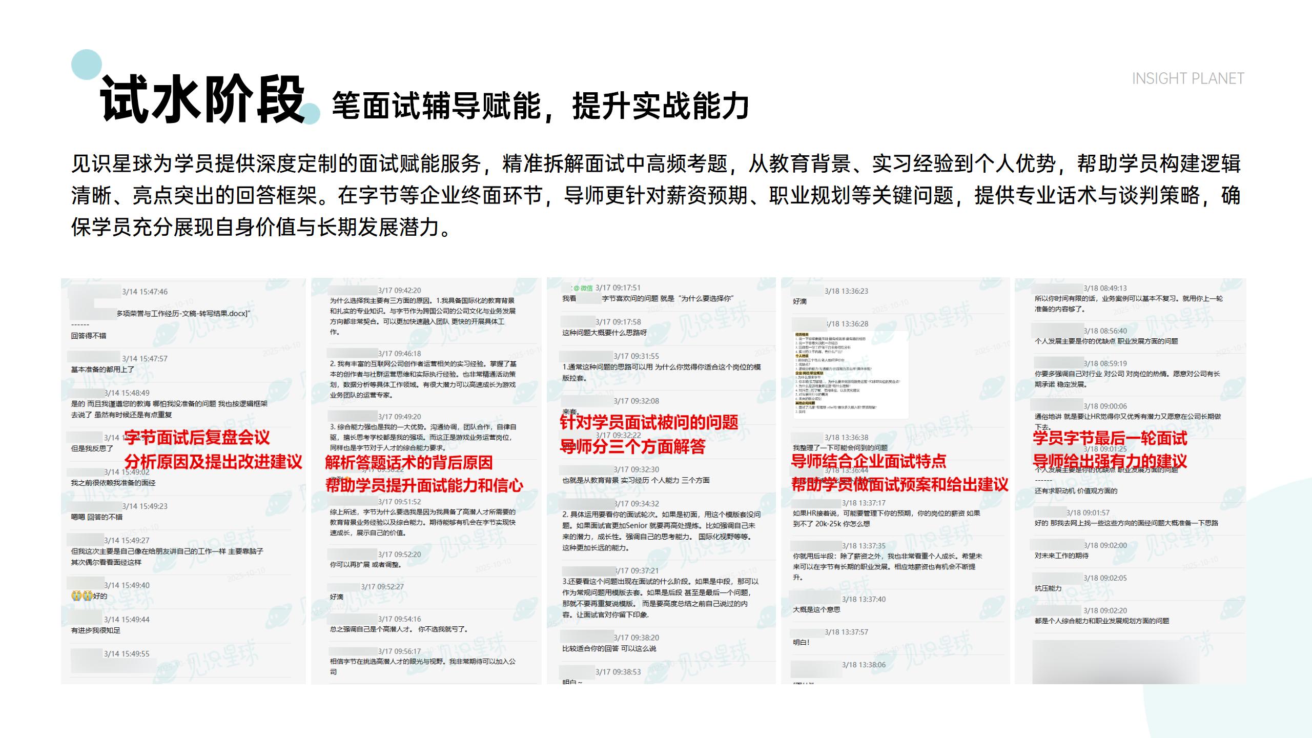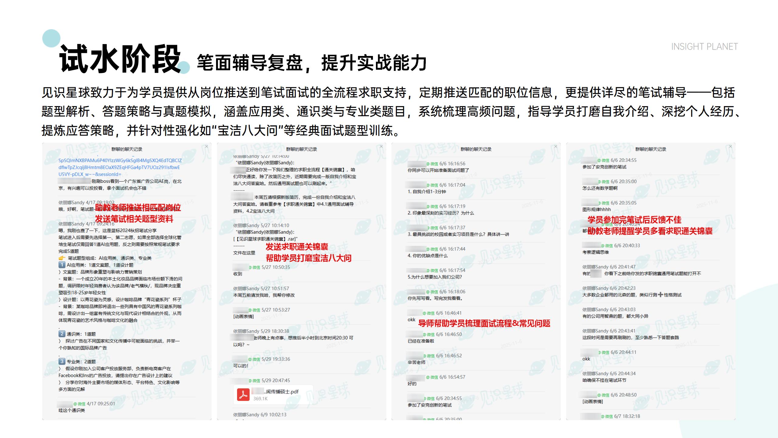 实战积累经验,多轮专项1V1辅导(AI面/笔试/群面/业务面/HR面/BOSS面)