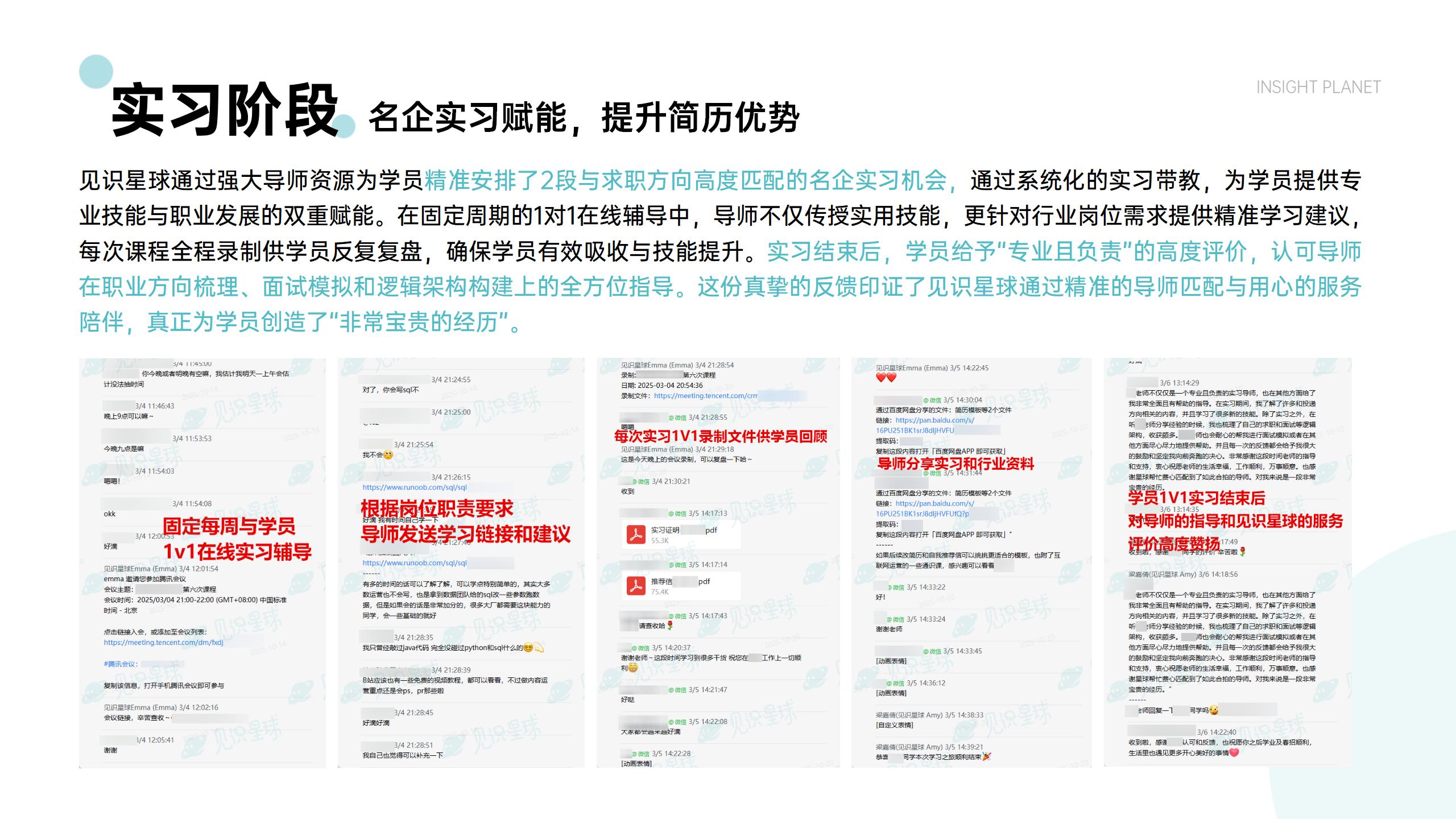 名企实习:安排2段名企实习机会